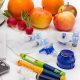 A CGMS sensor is worn separately to the pump, inserted under the skin and measures the glucose level in the interstitial fluid. A transmitter is attached to the sensor to relay the glucose levels to a receiver device or in combination with an insulin pump.